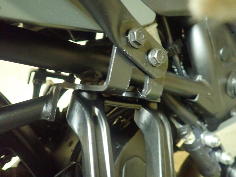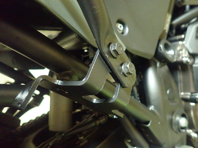最後のパーツは、左右のサイドケースを固定するセンターステーの取り付けです。左側2穴の固定穴、右側も2か所の固定穴がありまして、左右の固定穴のピッチが右と左で違っており、定位置での固定しかできません。左右向きを間違って固定することのないように工夫されてました。