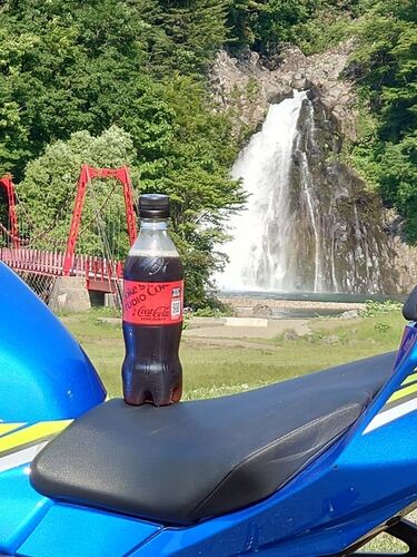 スカッとさわやか コカコーラ スカッとさわやか GSX-R 発想が昭和だな( ̄д ̄) とある休みの日、 ブルーラインを乗り越えノンストップで法体の滝へ! 片道100kmタイヤは減るわガソリンは使うわ ちょっと贅沢なスカッとでしたヽ(^。^)ノ 財布の中身もスカッと…